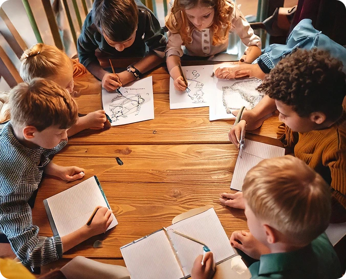 Des séances en groupe adaptées aux enfants ou aux adultes, favorisant l’expression, le partage et l’inspiration à travers l’écriture, le dessin et le collage.